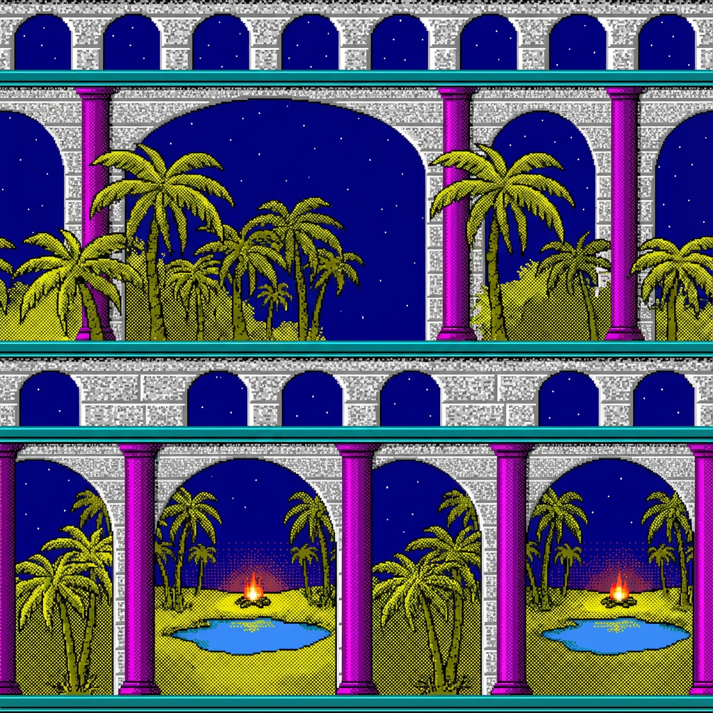The prompts I used were variations on this, with some classic bitmap tiling wallpapers attached for style inspiration: